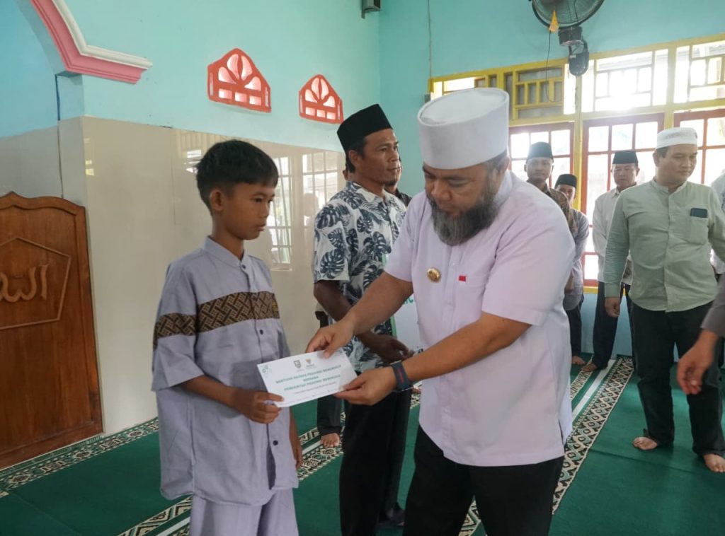 Selain itu, gubernur juga menyerahkan bantuan pembangunan masjid sebesar Rp15 juta, serta paket sembako untuk masyarakat yang membutuhkan.