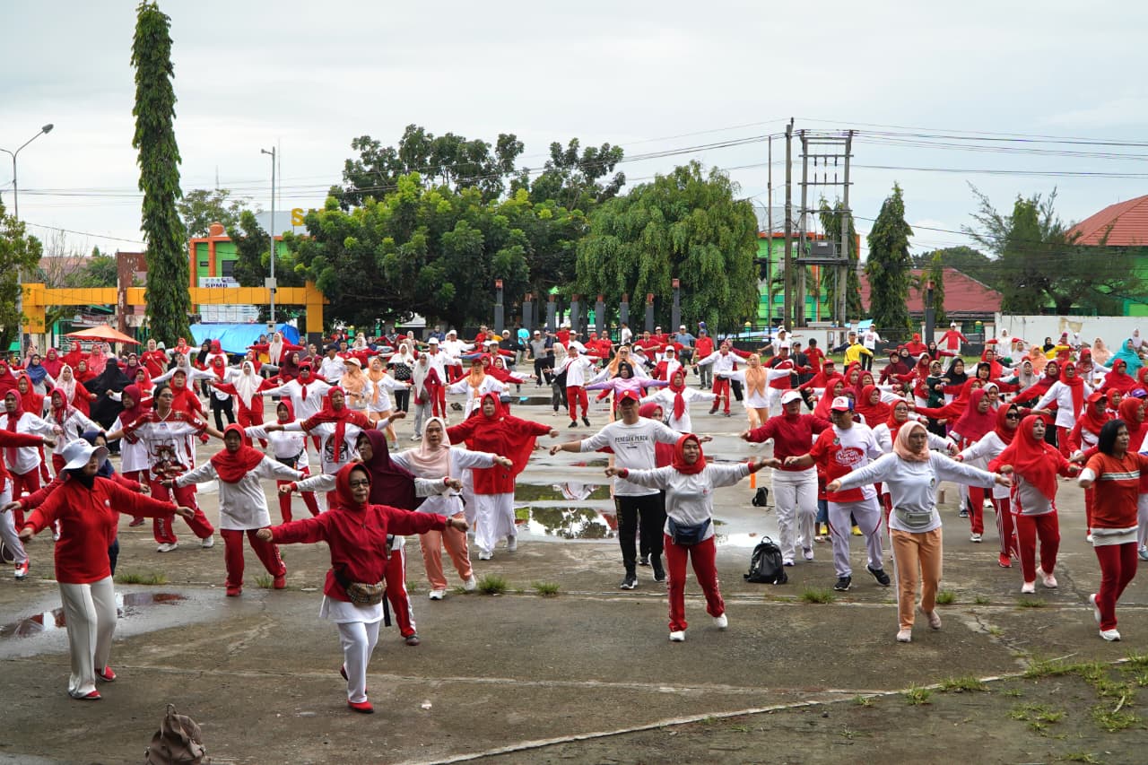 Dengan mengenakan busana bernuansa merah putih, kegiatan senam bersama ini diikuti oleh berbagai instansi dan elemen masyarakat. Pada kesempatan tersebut, panitia juga membagikan door prize dengan beragam hadiah menarik.